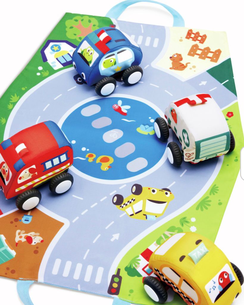Incluye coches de peluche seguros y ligeros, acompañados de una alfombra temática perfecta para inventar circuitos y aventuras. Ideal para juego en casa, viajes o guarderías. Estimula la imaginación y la motricidad sin riesgos.